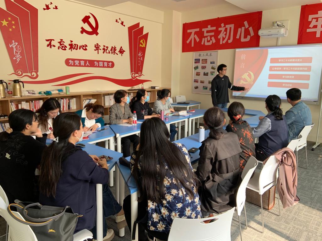 公外教师第一党支部全体党员教师集中学习领会中共二十大讲话精神,副院长马秀鹏参与此次学习。整个学习分为阐释学习二十大的重大意义、以考促学、学习新党章、党员讨论四大部分。