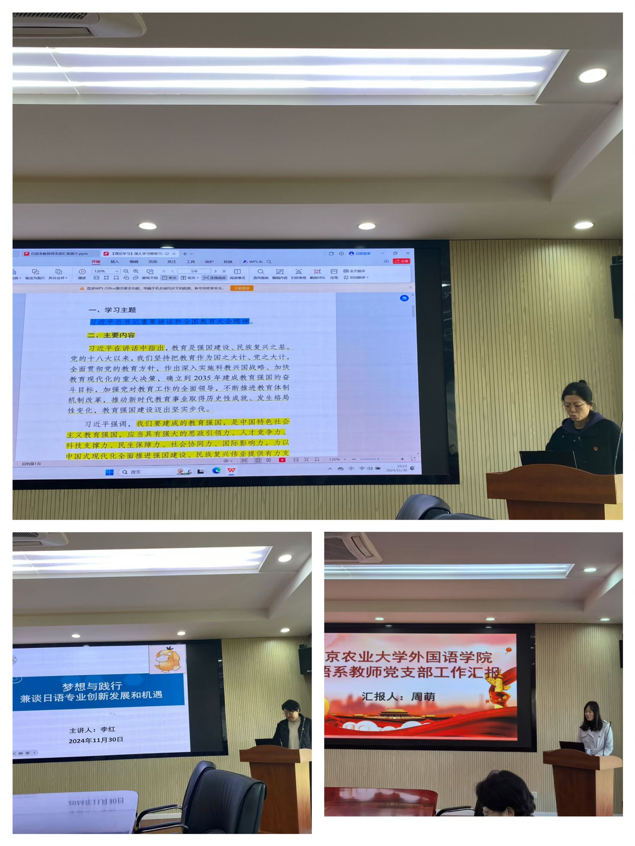 随后,两支部围绕专业与学科建设进行了座谈交流。李庆保介绍了安徽农业大学日语专业的基本情况,分享了专业建设的经验和目前面临的困境。色情小说 日语系李红教授则详细介绍了南农日语学科点的基本情况,并就教育教学、学科建设、思政育人、农科特色发挥等方面进行了经验分享,随后两校教师进行了深入交流,为两校日语专业的未来发展提供了新的思路和启示。