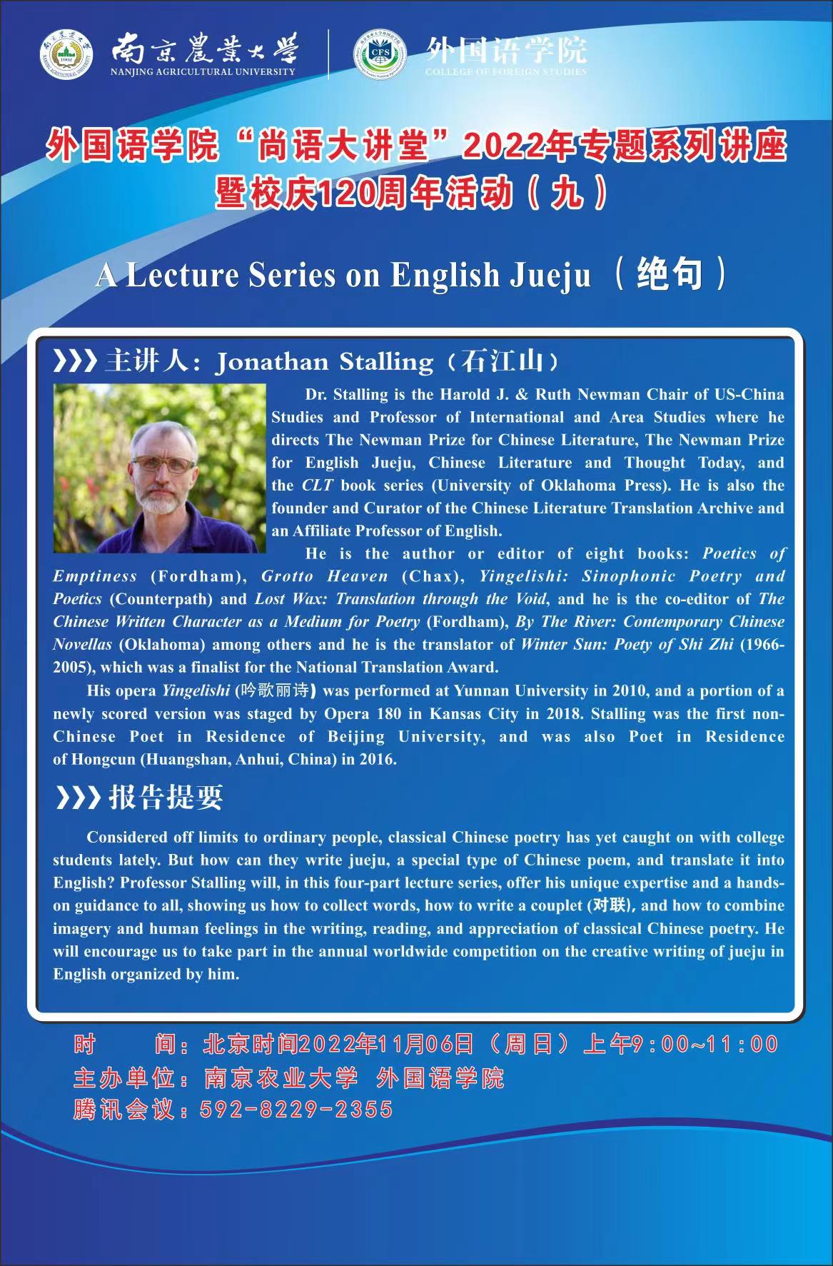 讲座题目:A Lecture Series on English Jueju(绝句)