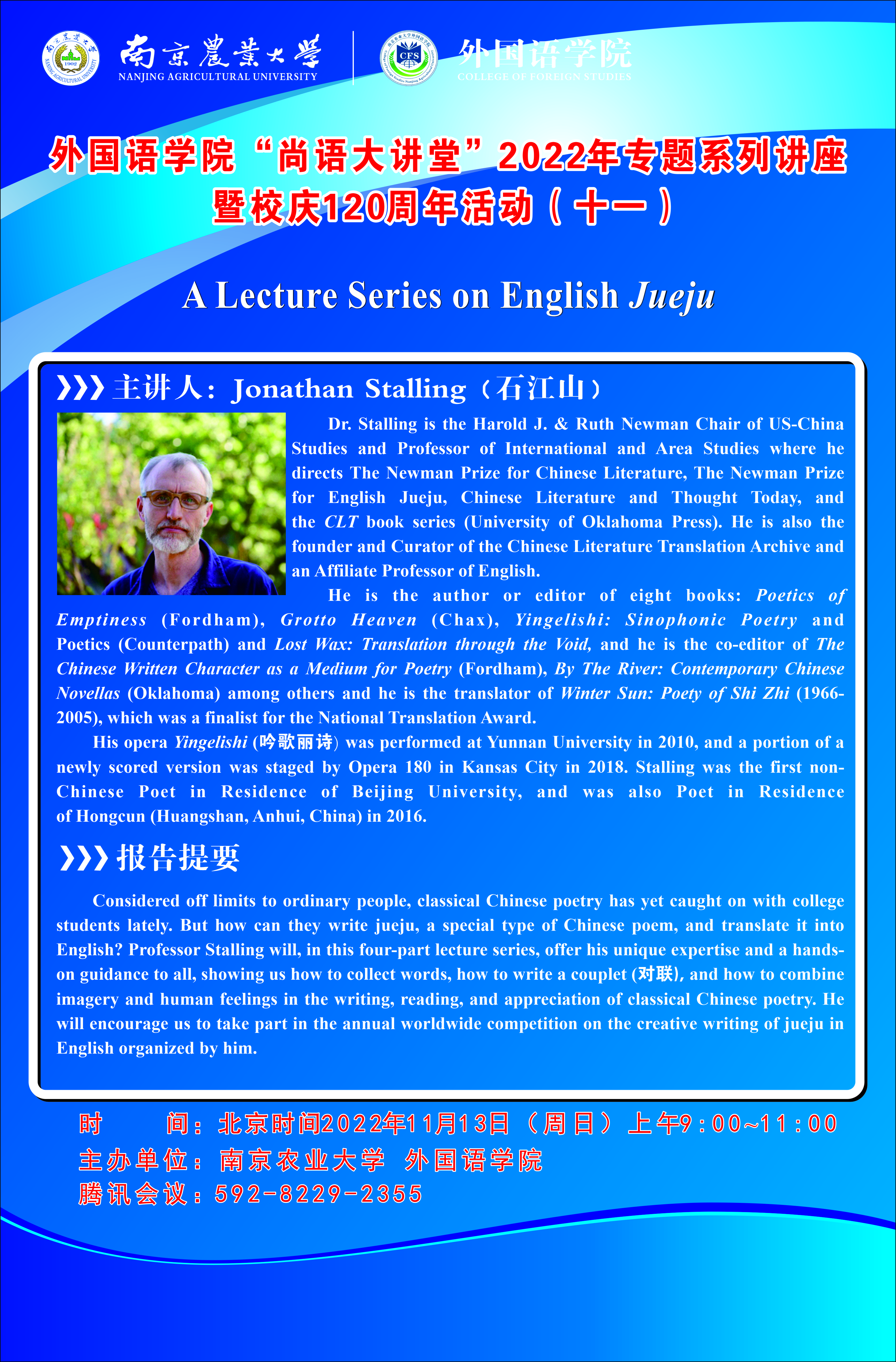 讲座题目:A Lecture Series on English Jueju(绝句)