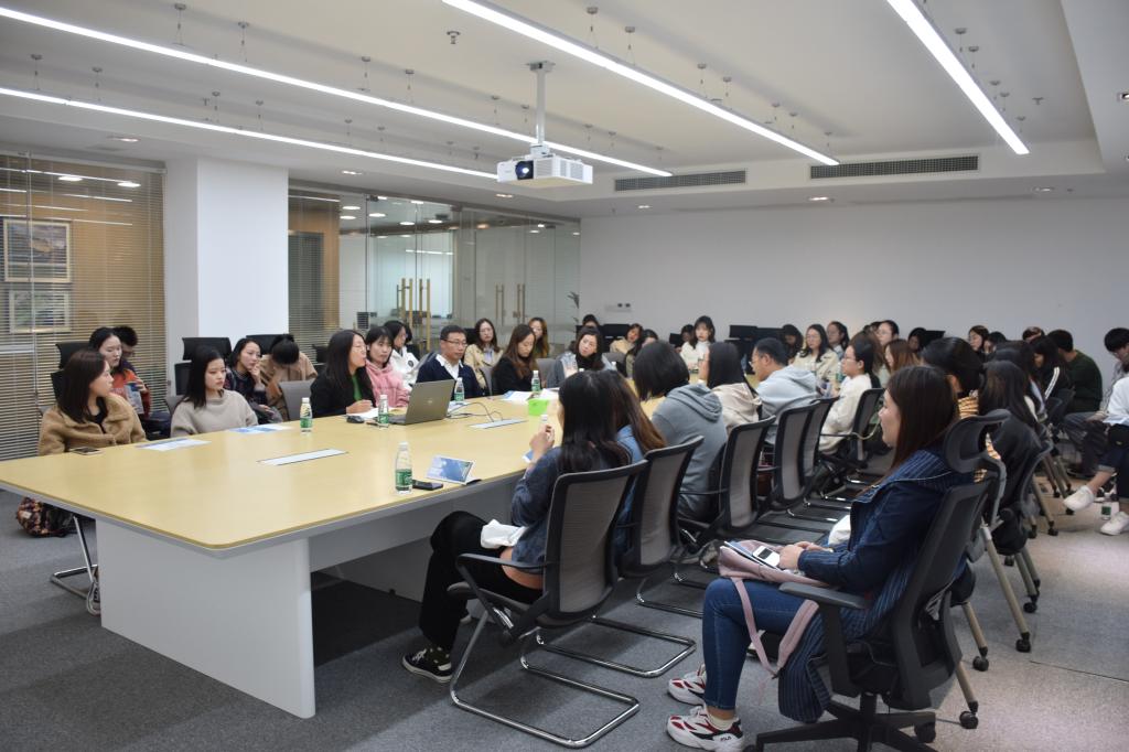 优秀毕业生,现任舜禹日文部经理孙伟与同学们分享了自己在舜禹的工作经历,她建议同学们要提升自身专业能力,提高母语水平,提升逻辑思维能力,提升学习新事物的主动性和积极性。舜禹项目经理陈肖也结合自身的工作经验,建议同学们要提高书面表达能力,学会通过每一次的翻译经历积累经验。现场的交流互动频繁,针对同学们的提问,在场的相关部门人员进行了专业回答。
