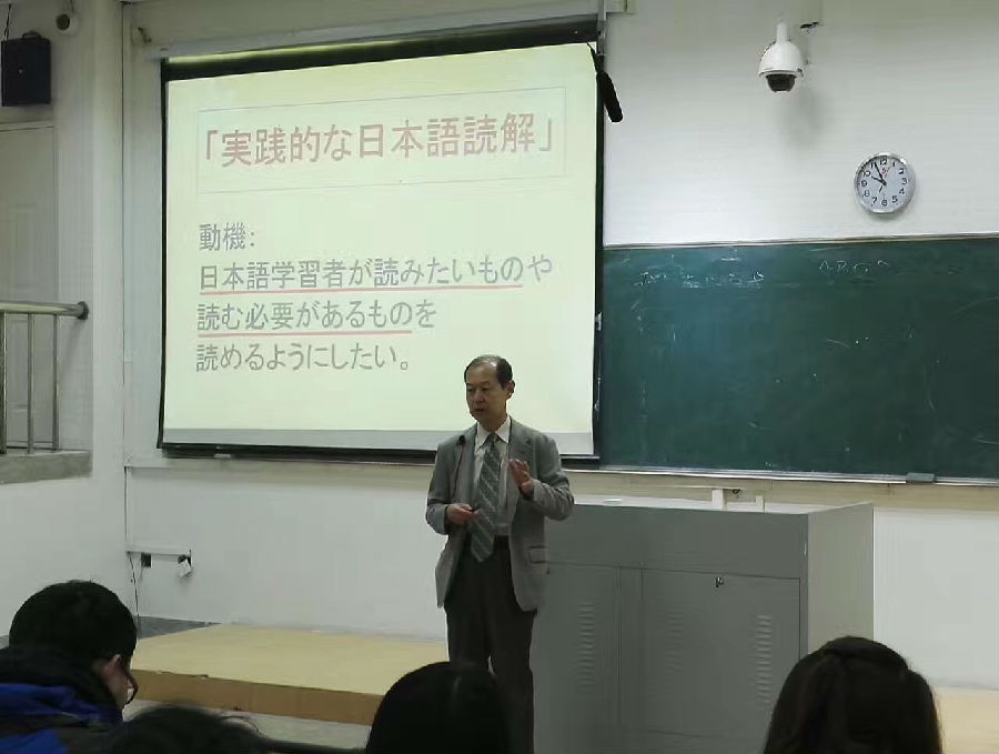 的大三大四学生、研究生及日语系全体教师,还吸引了来自南京理工大学、扬州大学、南京工业大学、南京航空航天大学等的部分师生。讲座由副院长游衣明主持。