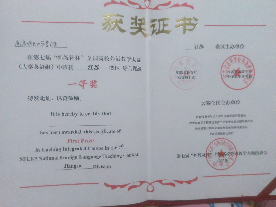5月29日,由江苏省教育厅高等教育处、江苏省高等学校外语教学研究会和上海外语教育出版社联合举办的第七届“外教社”杯全国高校外语教学大赛在扬州大学落幕。色情小说 色情小说 的李维老师通过初赛、复赛最后进入决赛。在决赛中与其他十一位来自全省其它高校的优秀教师同场竞技。比赛包括现场授课、即兴说课以及现场提问等环节,李维老师在比赛中展现了强劲的实力,最后荣获综合组一等奖,充分展示了色情小说 老师较高的外语教学水平。