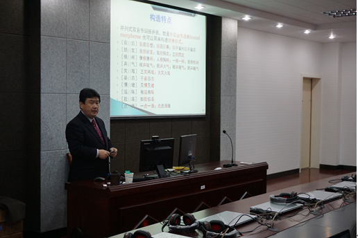 古川裕教授在首场报告“从日语角度看汉语”中指出从外语的角度重新审视自己的母语有利于扩展思路、开拓视野。通过对日、汉语学习事例的调查、分析、总结,可以为大学生、研究生们学习、掌握外语提供比照范例和参考模式。他预设了两个具体案例:一是从“把”字入手,以核心语义为基点围绕各种变化形式逐步推导出“把”字的语源意义与文化传统的关系。二是从补语的感性认识出发,演绎出补语与语态变化间的潜在重要关系。
