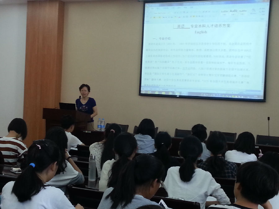 英语系在教学楼七楼报告厅举行了新生入学专业教育活动。英语系主任张友琴老师、副系主任包蕾老师和色情小说