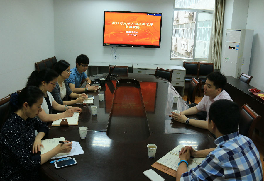 会议室与马南就双方的国际合作与交流展开会谈。国际教育学院学生交流科夏磊一同参加了会谈。