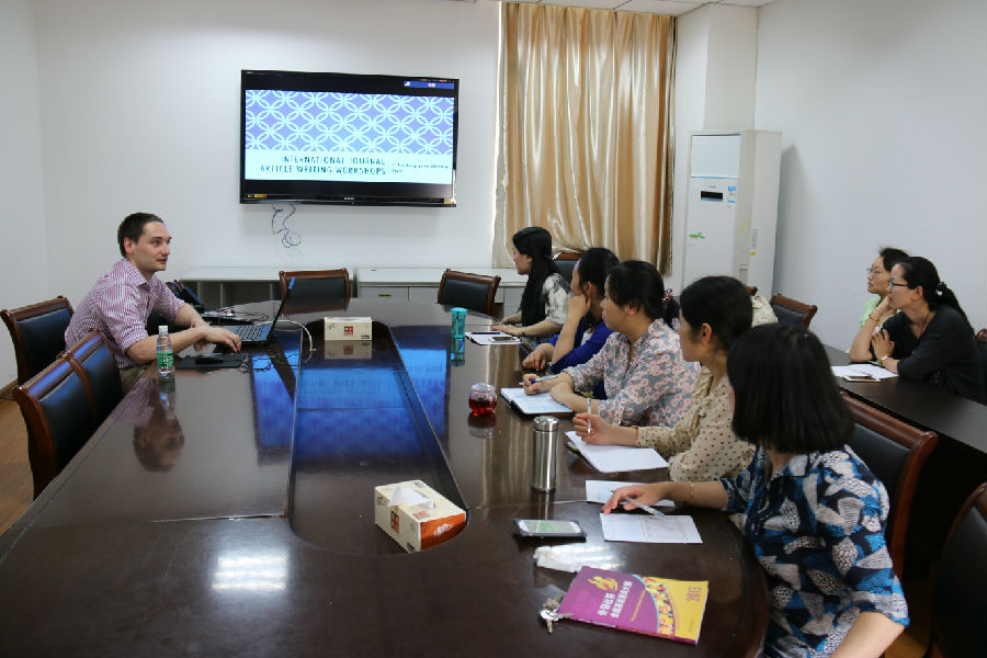 第四次“International Journal Article Writing Workshop”讨论会在教学楼E302举行。外教James Luke Hadley博士和学院部分中青年参加了本次讨论会。