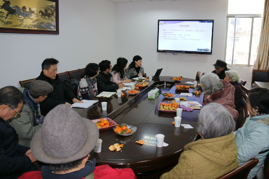 韩纪琴首先向长期以来关心和支持学院发展的老同志表示衷心的感谢。随后,做了题为“立足本体、强化特色”的主题汇报,向老同志们汇报了2014年的工作情况、2015年的重点工作以及当前学院面临的问题。在学院的重点工作中,韩纪琴希望学院的老同志能够在学院院史编撰、院训的提炼和形象标识的设计、教师发展路径、教师教学能力提升以及学生专业信心的树立等方面提供宝贵意见,贡献力量。