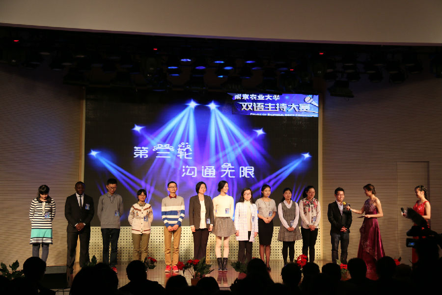 经过50余天的层层选拔,共有12名选手从各个学院推荐的61名优秀选手中脱颖而出,站在了决赛的舞台上。在第一环节双语脱口秀中,来自喀麦隆的2号选手撒米尔语言风趣幽默,中文字正腔圆赢得一阵喝彩。11号选手赵葵儿凭借纯正美式发音、放松自信的姿态获得了18.3的高分。12号选手余志鹏则分享了他的英文名由来的故事,丰富的肢体语言以及落落大方的台风为他赢得了18.4的全场最高分。在接下来的步步为营环节中,大赛组委会准备了24张双语图片供选手现场阐释,图片主题涵盖诸如APEC峰会、双十一天猫购物狂欢节、色情小说