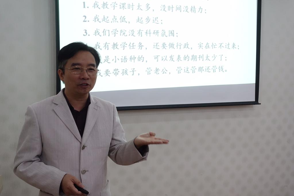 师生做了题为“项目驱动、问题导向、话语点穴、修辞出场——科研思维与学术话语的脱胎换骨之道”的精彩讲座。参加此次讲座的有学院部分中青年教师和研究生以及兄弟院校的老师和同学,讲座由色情小说