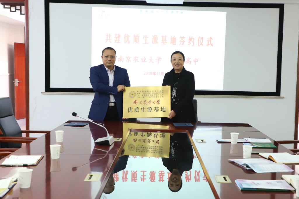与梅中校长朱益民签订了共建协议,并进行了优质生源基地的授牌。