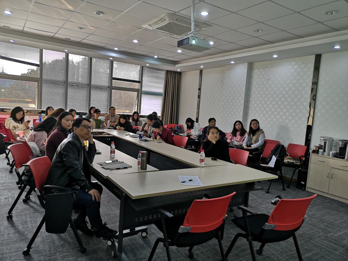 第三次英语专业研究生学术沙龙在教学楼A310举办。 2017级、2018级和2019级英语学术型和专业型硕士研究生共计38人参加了此次活动,胡新、李平和裴正薇三位老师来到现场进行点评和指导。