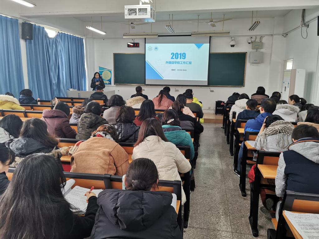 在教学楼A504召开学院年度工作总结述职大会,副院长(主持工作)曹新宇、副院长游衣明、院党委副书记韩立新及全院教职工参加本次会议。会议由游衣明主持。