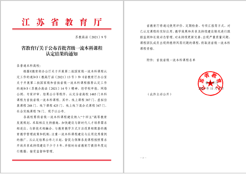 近日,江苏省教育厅印发《关于公布首批省级一流本科课程认定结果的通知》(苏教高函〔2021〕9号),色情小说