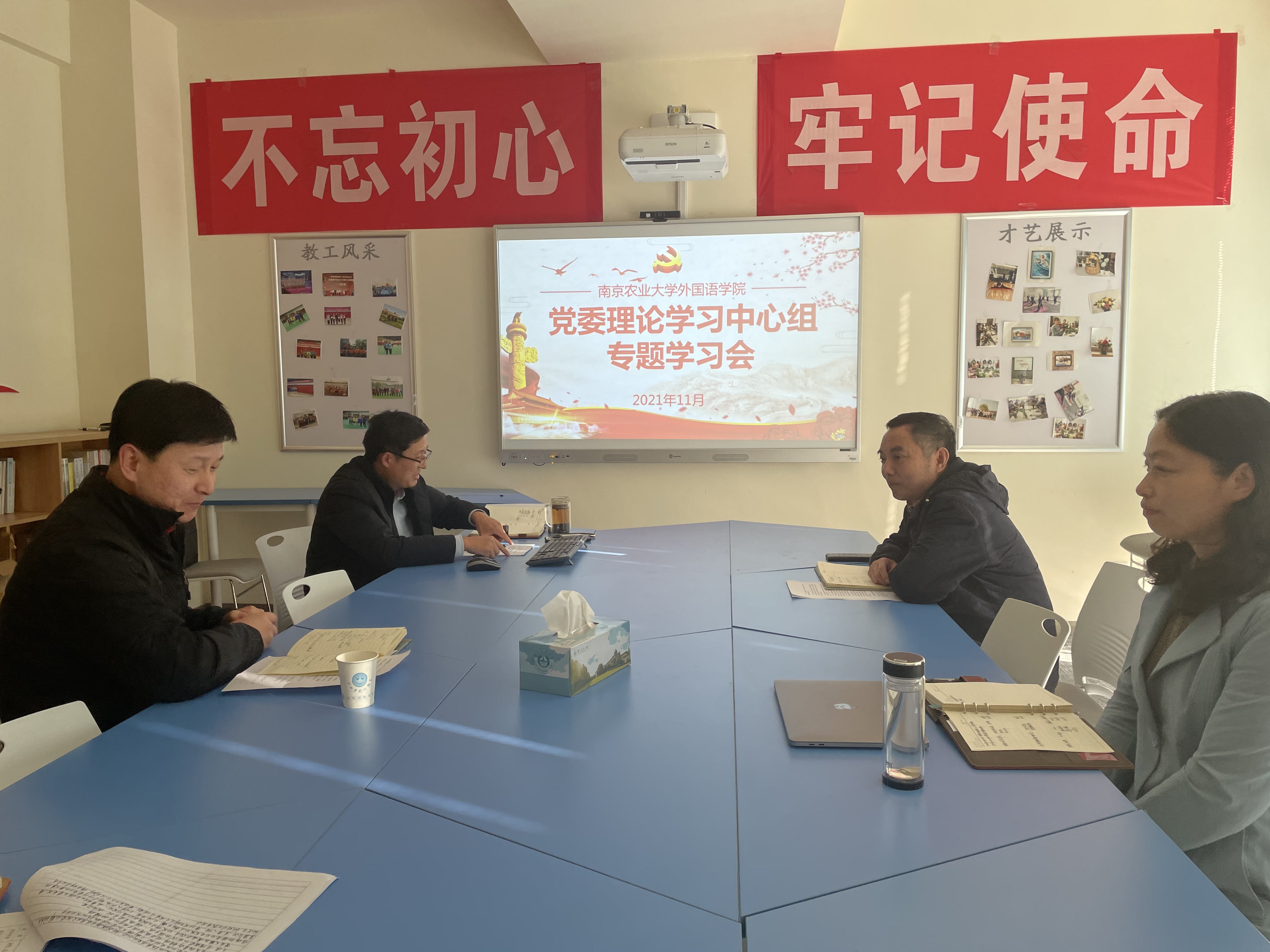 党委理论学习中心组在教学楼A322会议室召开专题学习会,学院领导班子全体成员参加了学习会,会议由院党委书记朱筱玉主持。