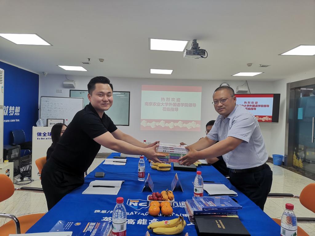 党委副书记韩立新、学工办主任甄亚乐、党务秘书王翀,南京新航道大学生事业部主任俞诚栋、市区考研市场经理李鑫、考研项目负责校长丁伊诺等参加签约仪式并进行了交流座谈。