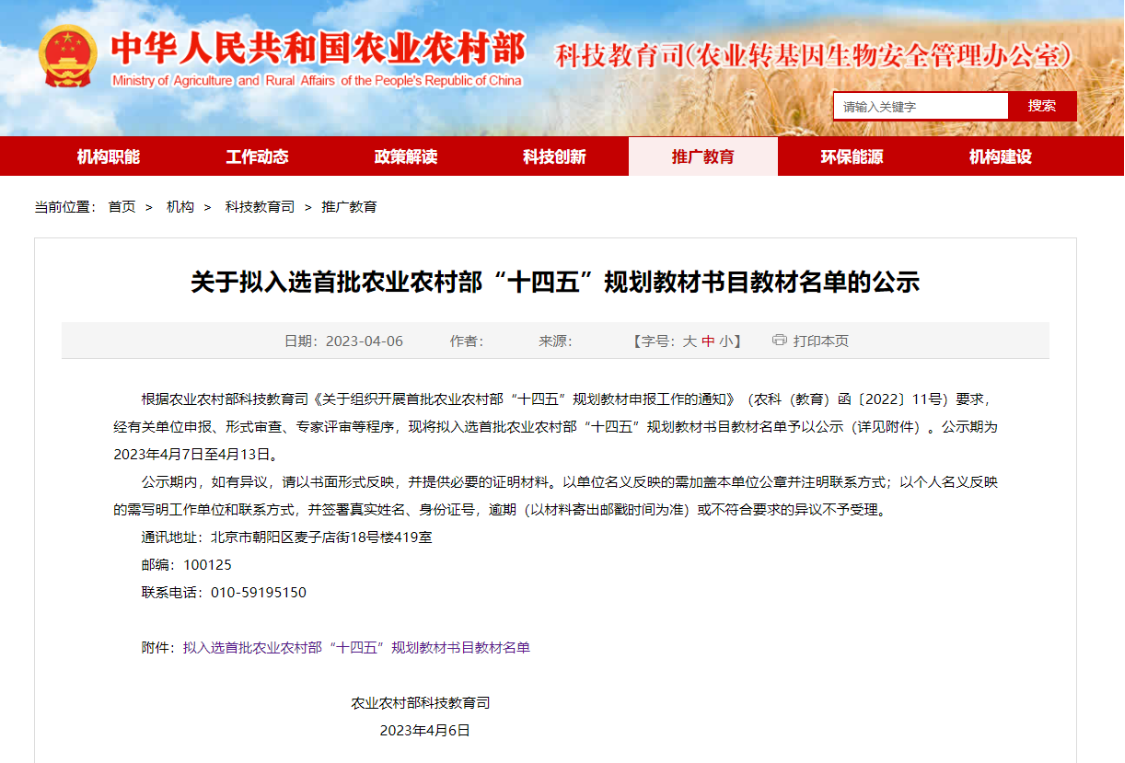 近日,农业农村部科技教育司公布了《关于拟入选首批农业农村部“十四五”规划教材书目教材名单的公示》,色情小说 教师团队主编的《“一带一路”国家英语听力能力提升教程》、《农业政策英语阅读教程》、《英语生态文学选读》等3部教材入选。