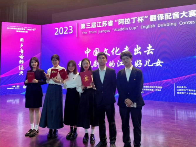 樊淑英副教授带队,英语专业学生伍佳怡、刘浩然、陆成贤、蒋沛霖、厉淑涵、任卓璇组建的《建军大业》配音团队以及陈僖禾、秦天、胡旭东组建的《虞兮叹》配音团队顺利进入决赛,其中《建军大业》配音团队荣获最佳翻译奖。