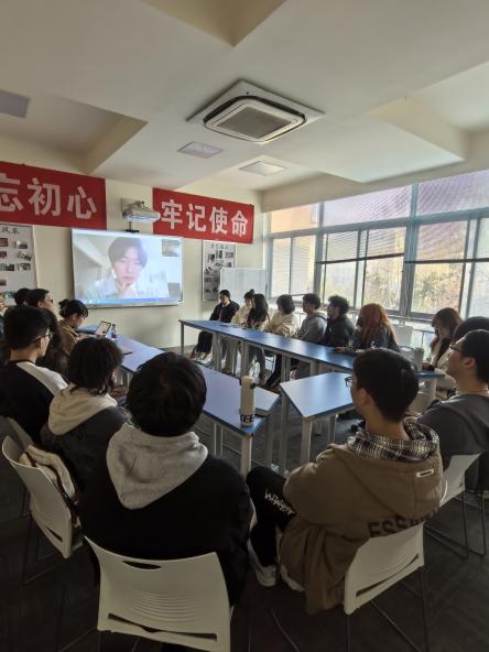 日语系2020届校友孙晨博在线与同学们进行交流,学院党委副书记高务龙、日语系系主任陈海涛、日语专业的本科生和研究生共近20人参加了分享会。