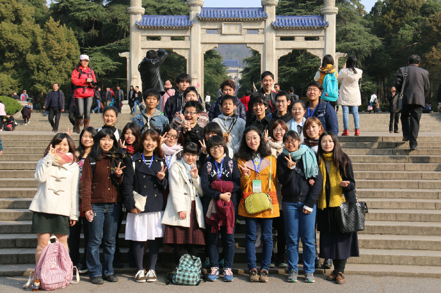 志愿者运用中、英、日三国语言为来自日本大学的研修团成员介绍了梅花的颜色、品种以及文化意蕴,研修团成员对满山盛开的梅花纷纷赞美。。之后,志愿者带领研修团成员参观了明孝陵,向他们介绍了明太祖朱元璋的生平事迹,积极传播中国的古典文化。参观过程中跨语言的交流使得双方的语言能力都得到了提升,也加强了双方文化的交流与学习。