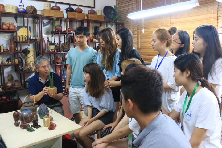 开展了以紫砂陶艺和太极拳为主题的中华文化研习活动,来自韩国庆北大学、江原大学、首尔大学参加2015 Global Summer School的三所高校的21名交流学生及带队老师参与了此次研习活动。