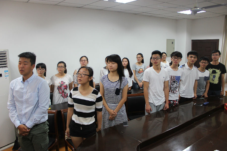 辅导员及学生干部在教学楼E302集体观看抗战胜利70周年阅兵式的同步转播。