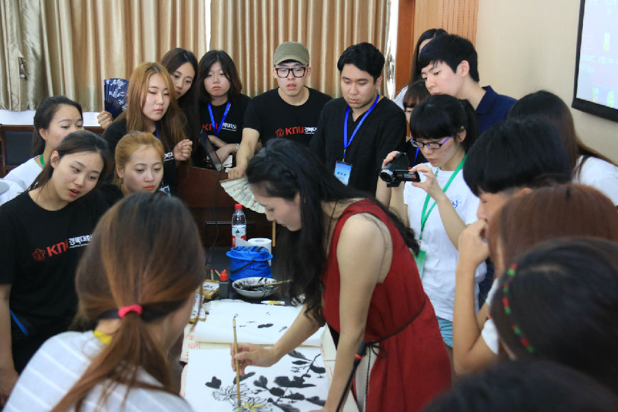 2015年7月15日,来自韩国庆北大学、江原大学、首尔大学的交换留学生简单地了解、学习了中国的国画、剪纸,参观了南京民俗博物馆,感受了中国传统民俗的魅力。