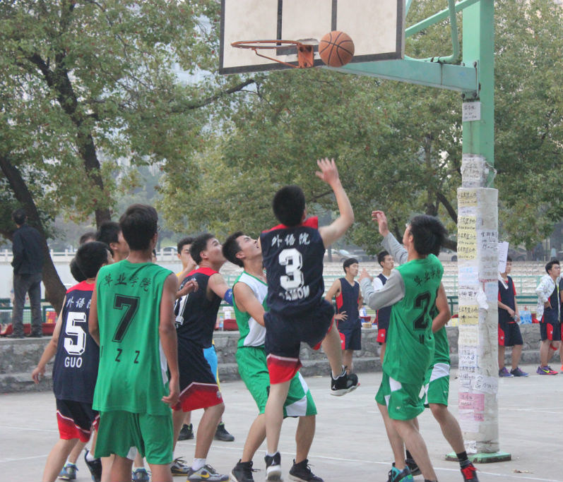 首场“新生杯”篮球赛在篮球场2号场地激情打响,对手为草业学院。