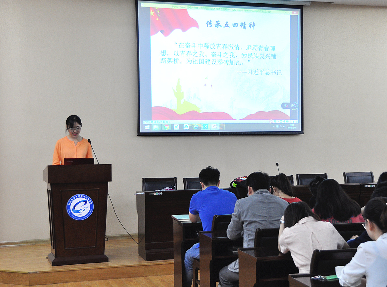 汤景瑶同志进行了题为“回顾五四运动,传承五四精神”的成果汇报。她的详细介绍带领党员同志重温了五四运动及之后一百年的发展,最后她引用了习近平总书记的语录作为传承五四精神的理论指导。